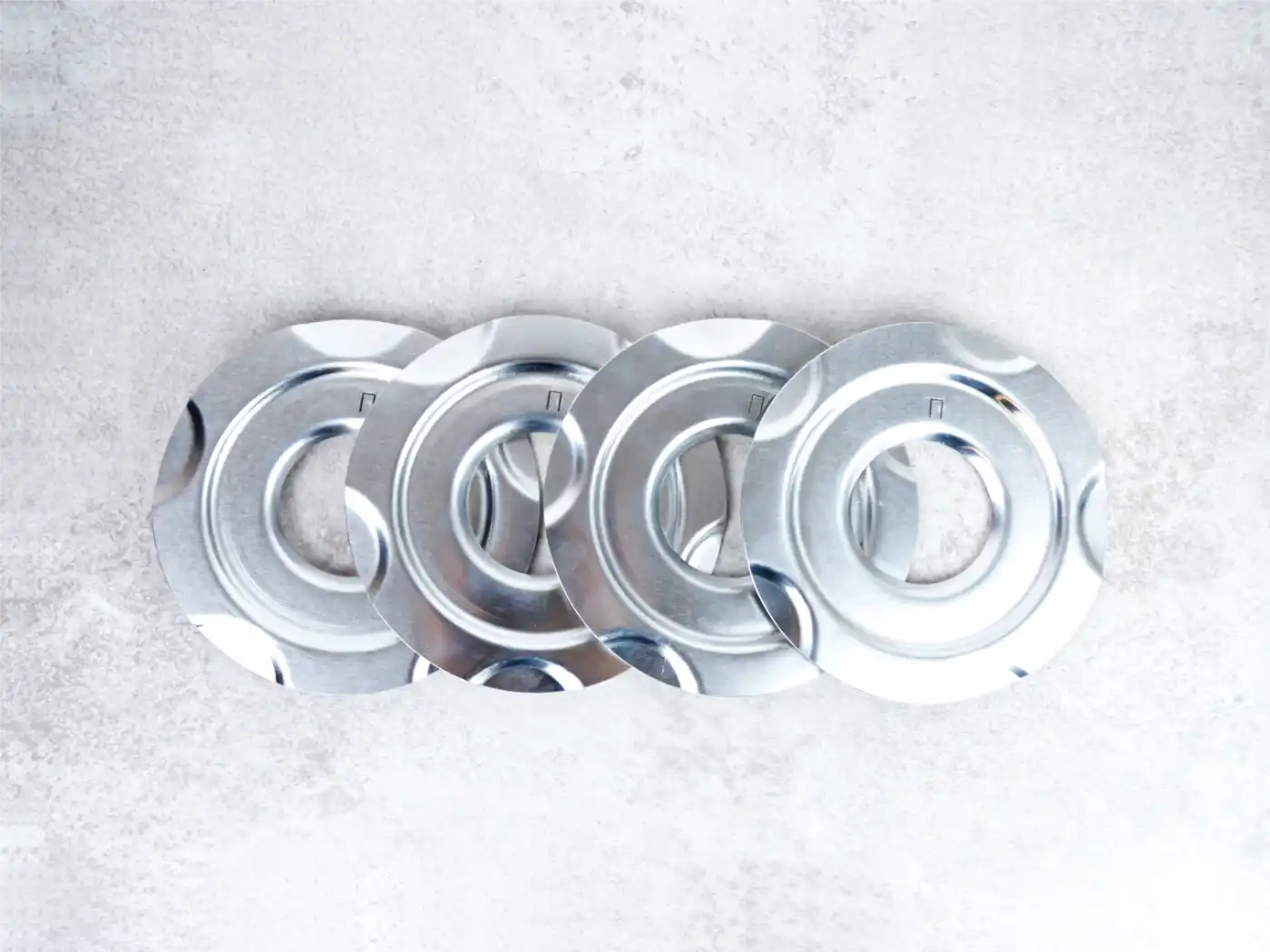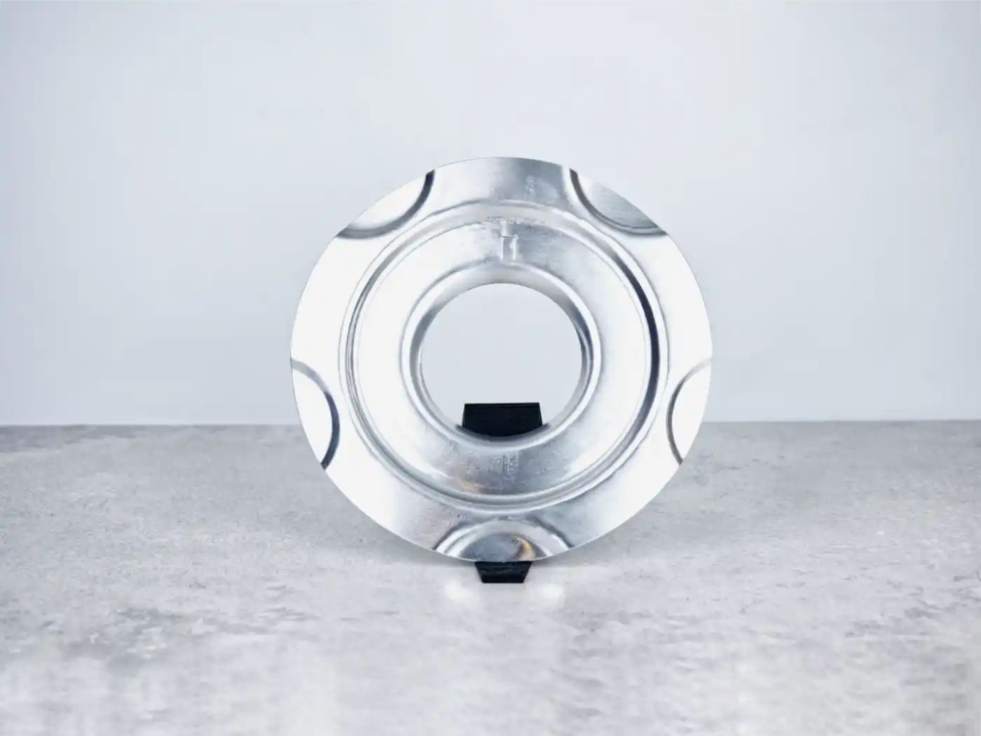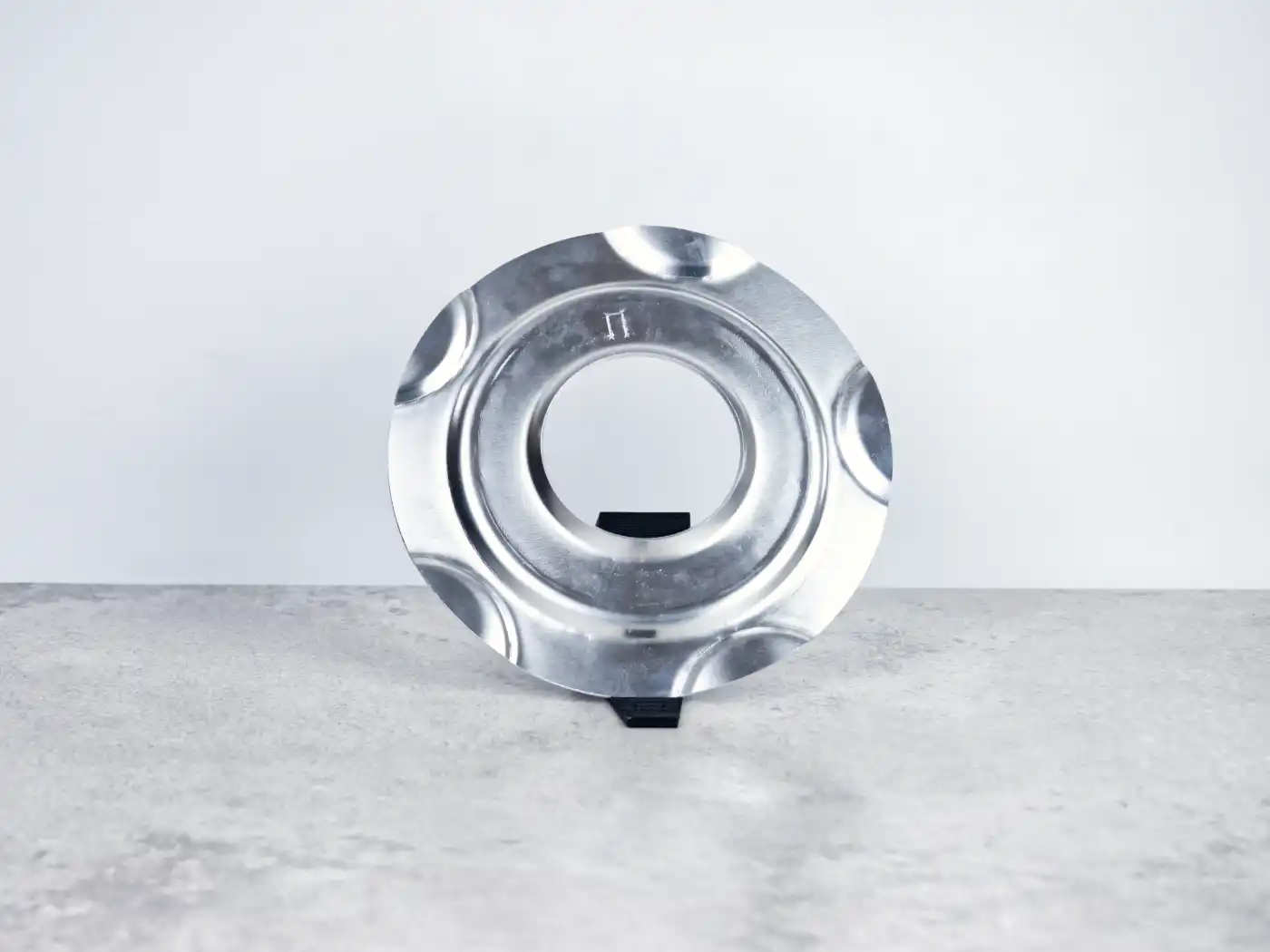 BBS RD aluminum center cap plates, designed as replacements for the original hubcap plates that are no longer easy to find. These plates are supplied as raw aluminum without any coating, so they can be spray-painted, powder-coated, or anodized to match the finish of your wheels. Installation is simple: the plates are secured to the wheels by attaching the center hexagon nut, which is not included and must be sourced separately. This makes a great alternative to rare original wheel covers and allows you to restore or complete your BBS RD wheel set.