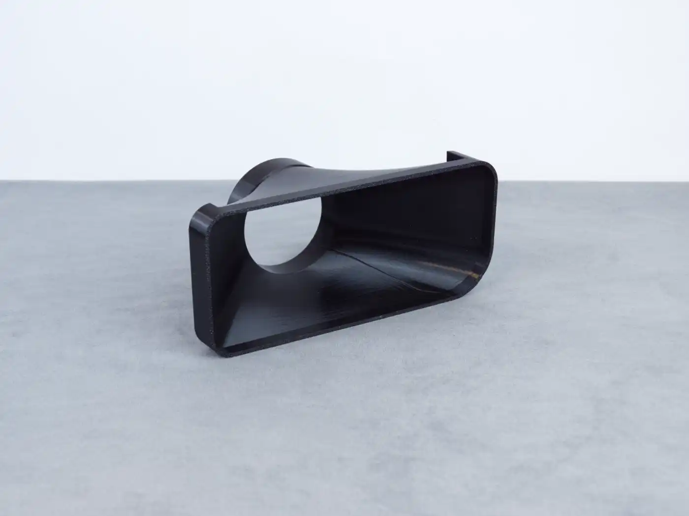 Cold air intake duct for BMW E36, designed as a direct replacement for the right-side front fog light. This duct mounts in the original fog light position and provides a 74–76 mm round outlet that can be connected to intake piping, the throttle body, or an air filter. It delivers improved airflow for performance applications while keeping a clean, factory-style look on the front bumper.