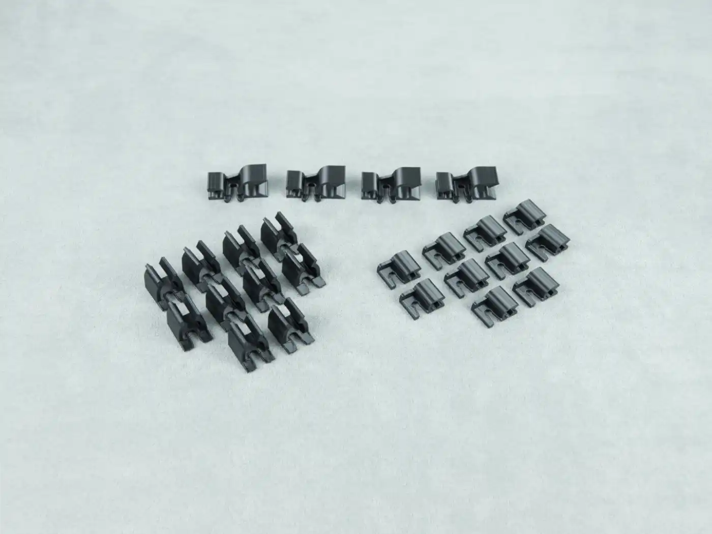 Aftermarket fuel and brake line mounting clip set designed as a repair solution for BMW E24 models. This set replaces original brittle or broken holders and restores proper routing of fuel pipes and brake lines along the underside of the chassis. Clips mount directly into factory holes, providing a secure and stable fit without modification.
