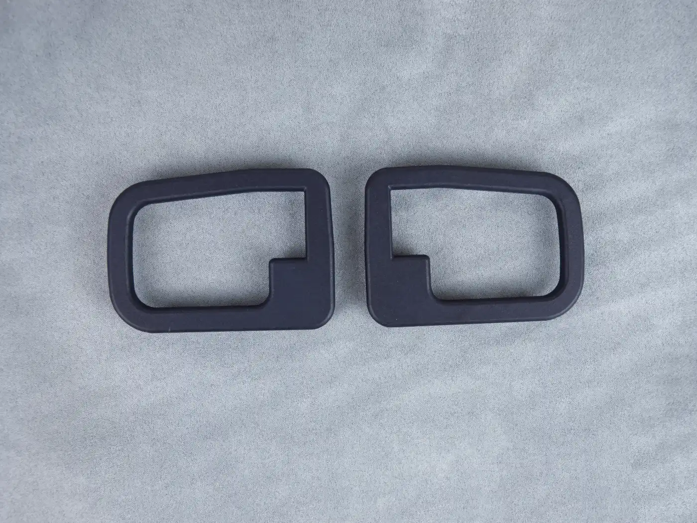 Plastic interior door handle trims for BMW E36, designed as direct replacements for the original covers that often crack or go missing with age. These handle trims snap into place using the same push-to-lock system as the factory parts and do not require any additional fasteners. Supplied in black plastic, they restore the clean factory look of the door panels and do not require painting or additional finishing.